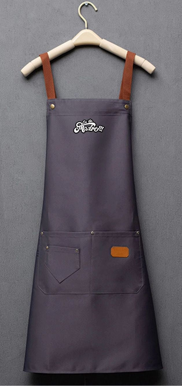 Incluye tres bolsillos al frente que te permiten tener todo a la mano, y su acabado en detalles de cuero junto al logo bordado de EN LA MADRE lo convierten en una pieza premium que grita “¡el chef soy yo!”.